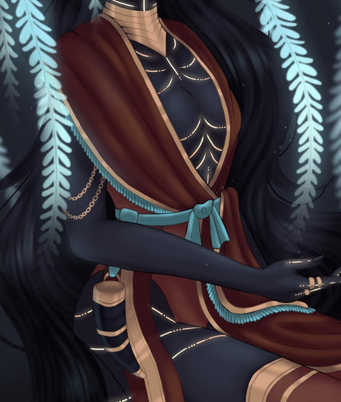 Minerva is a striking presence among any crowd. With her appearance alone she commands the attention of others, at a towering height of 9’1 with a frame sculpted with lean muscle, honed through years of training and discipline.Her hair drapes down her back in silky waves, ending at her knee. She often wears it